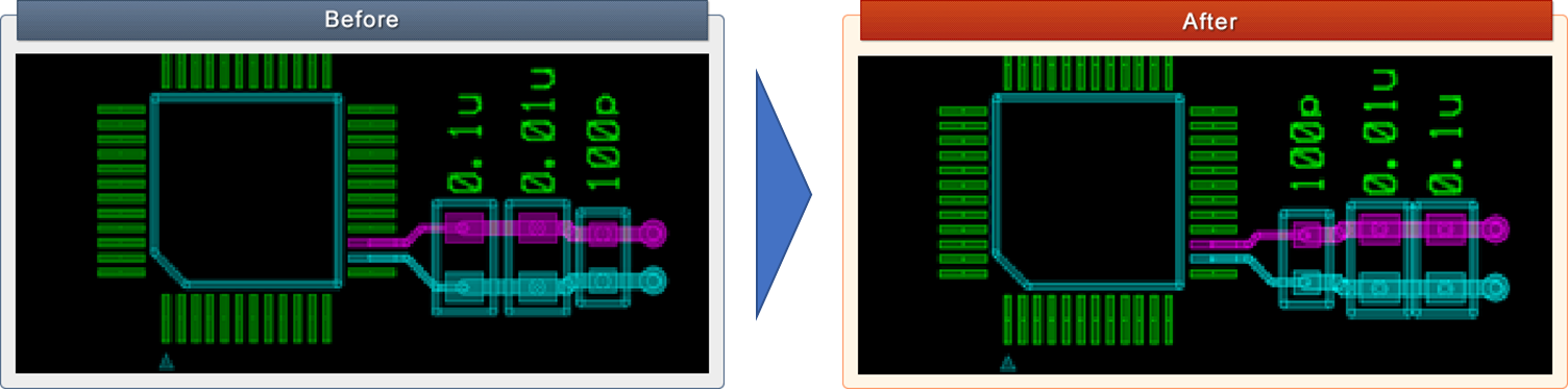 といった具合に電源ピン側から容量の小さい順に並べるようにします。